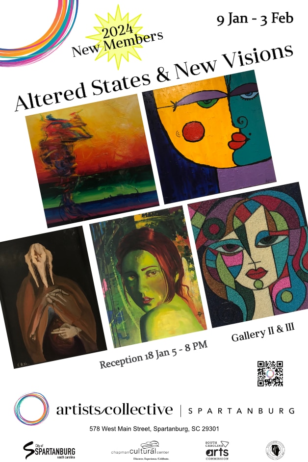 New 2023 members of the Artists Collective | Spartanburg will reveal themselves through their unique artistic visions “of the place we all call home” in “Altered States: 10 New Visions,” an exhibition Jan. 9 through Feb. 3 in Galleries II and III.