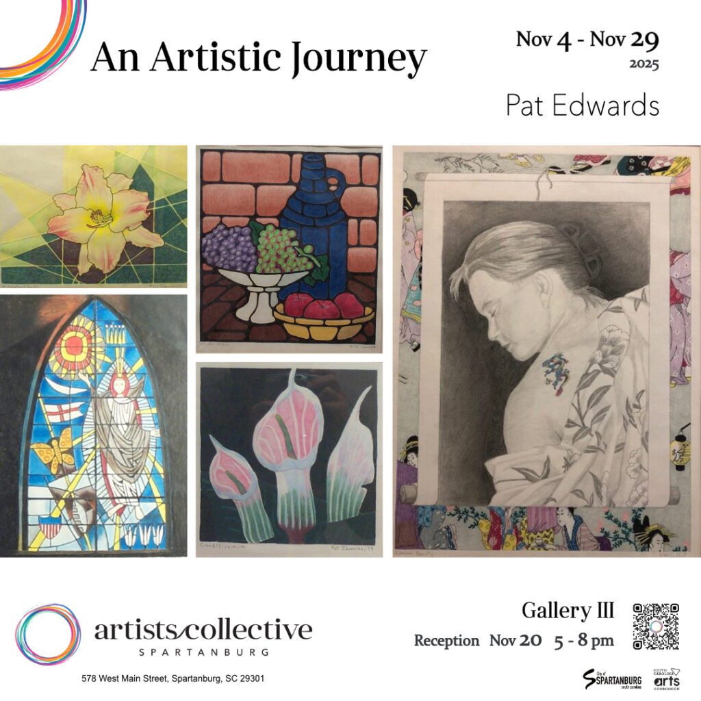 Pat Edwards will share his 40 years as an artist through an upcoming exhibition of his colored pencil and embossed Prismacolor works, “An Artistic Journey,” Nov. 4 through 29 in Gallery III of the Artists Collective | Spartanburg.