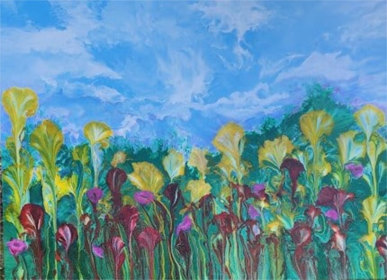 Diane McAndrew, a New Jersey native who has lived in Spartanburg for more than 40 years, says, “My passion for creating art was sparked at an early age by her father’s talents in fabric design, painting, and photography.” She adds, “For me, creating a painting is pure joy. Whether I’m moving fluid acrylics across a canvas or carefully layering oil paints, I find endless inspiration in the movement and energy of nature. I work in a variety of styles – from abstract fluid art to expressive landscapes and, more recently, portraiture. Each piece is a chance to explore color, form, and emotion in a new way. No matter the subject or medium, my goal is to evoke a sense of calm and invite viewers to connect with the natural rhythm and beauty that surrounds us.” She says an especially meaningful artistic moment came in 2025, when one of her paintings paired with a poem written by her mother was featured in an exhibit and sold – “an experience that affirmed the power of blending visual art with the written word.”