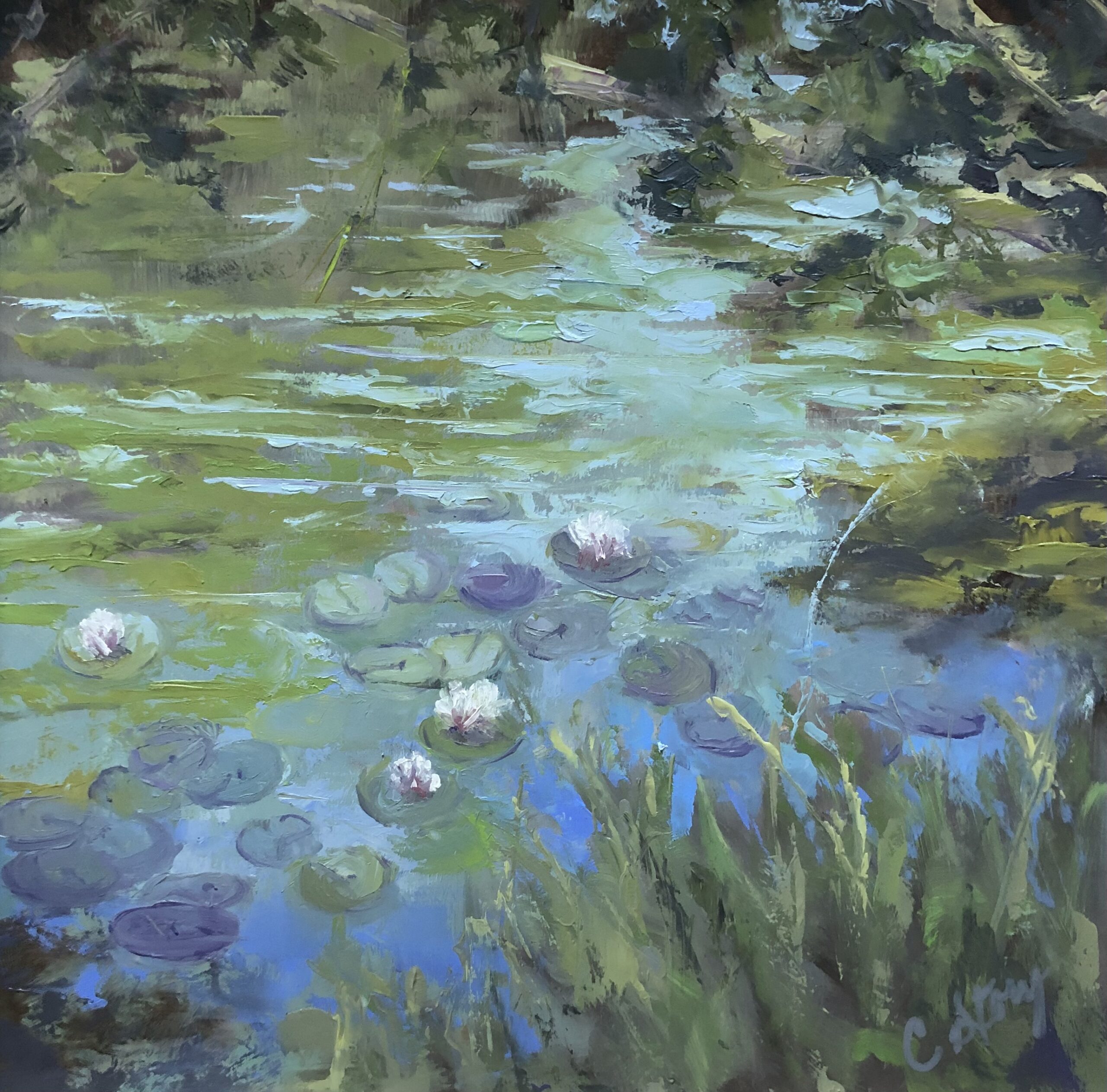 Story, who has been an artist for nearly 20 years, considers her works “representational in style. I sometimes like to push the bounds of what I realistically see. Many of my works are the product of ramblings in Georgia and the Carolinas; others are from travels further afield. I also enjoy painting still life because, as a ‘control freak,’ I like having command over subject, composition and lighting. Whether riotous color or subtlety of shadow, the beauty and insights to be appreciated with landscapes, animals or arranged objects are all inspiration to me.