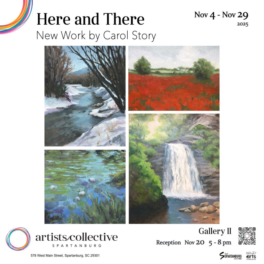 Landscape oil paintings created by Spartanburg artist Carol Story during the past year will be displayed in an upcoming exhibition, “Here and There: New Work by Carol Story,” Nov. 4 through 29 in Gallery II of the Artists Collective | Spartanburg.