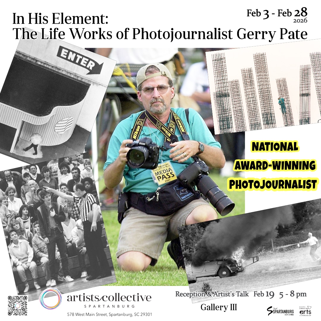 Just about everyone in Spartanburg has seen the works of award-winning Upstate photographer Gerry Pate, whether they realize it or not. Pate’s 40-year career as photojournalist will be exhibited Feb. 3 through 28 in “In His Element: The Life Works of Photojournalist Gerry Pate: A Retrospective” in Gallery III of the Artists Collective | Spartanburg.