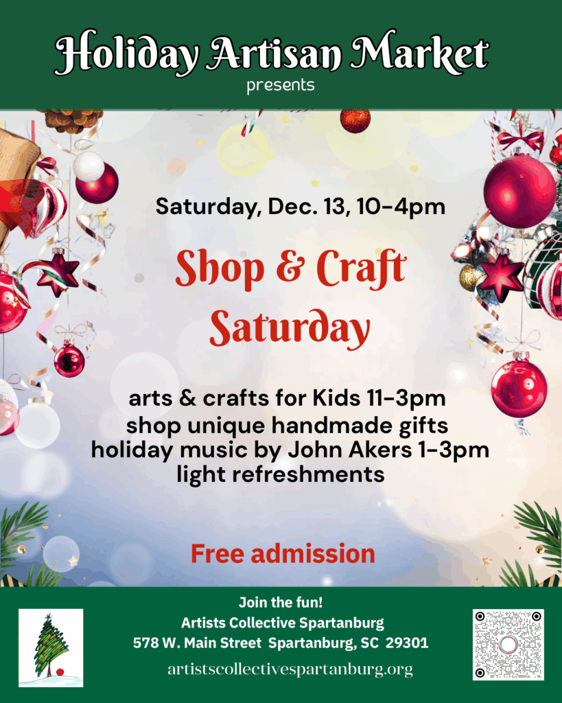 Saturday, Dec 13 | 10am – 4pm | Free Admission The Artists Collective Spartanburg invites you to join us for a special holiday season day full of creativity, community, and cheer! Join us for Jolly...