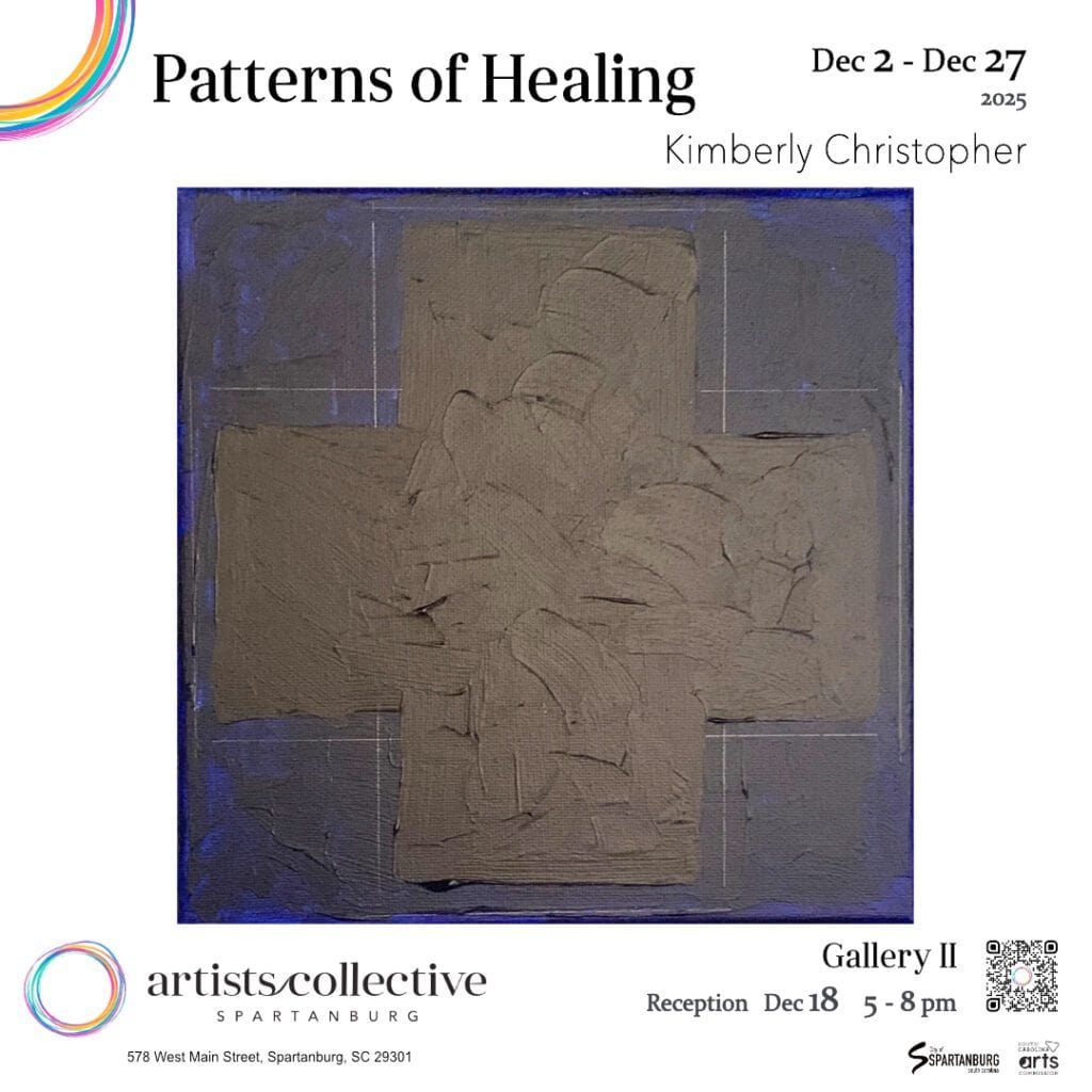 Spartanburg artist Kimberly Christopher has returned to painting after 16 years in other media in her exploration of pain and comfort. Her latest works will be exhibited in “Patterns of Healing: Exploring the Duality of...