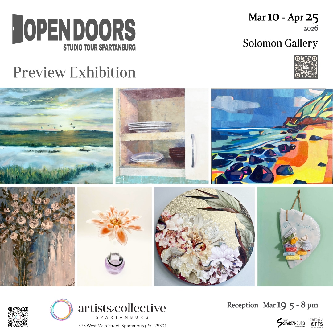 The Artists Collective | Spartanburg will give a sneak peek of works by artists participating on the fourth annual Open Doors Studio Tours in the “Open Doors Preview Exhibition” March 10 through April 25 in the group’s Solomon Gallery.