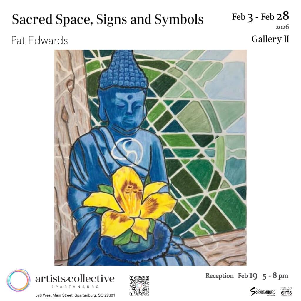 Upstate artist Pat Edwards will share his embossed Prismacolor images focused on various spiritual groups and churches in his exhibition, “Sacred Space, Signs and Symbols,” Feb. 3 through 28 in Gallery II of the Artists Collective | Spartanburg.