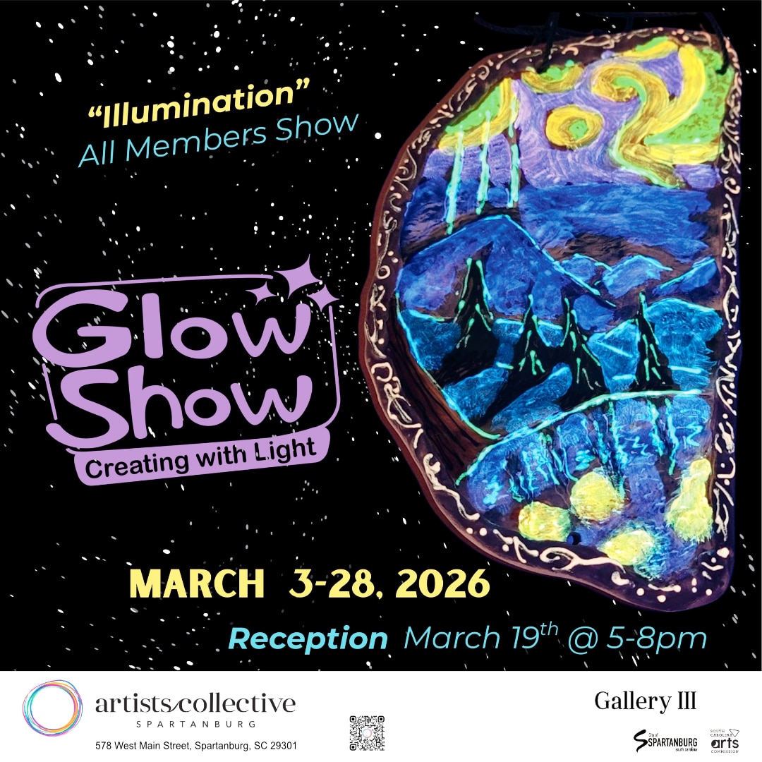 Something magical happens when you step into the darkness. At the Artists Collective | Spartanburg, ordinary paintings transform into glowing visions under the mysterious glow of black light in the upcoming exhibition “The Glow Show:...